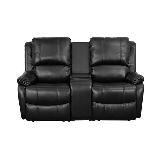 Allure Series 2-Seat Reclining Pillow Back Black LeatherSoft Theater Seating Unit with Cup Holders