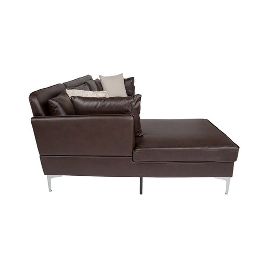 Back Bay Upholstered Accent Pillow Back Sectional with Left Side Facing Chaise in Brown LeatherSoft