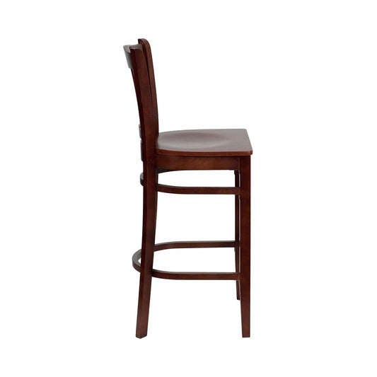 Vertical Slat Back Mahogany Wood Restaurant Barstool