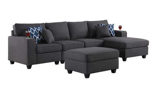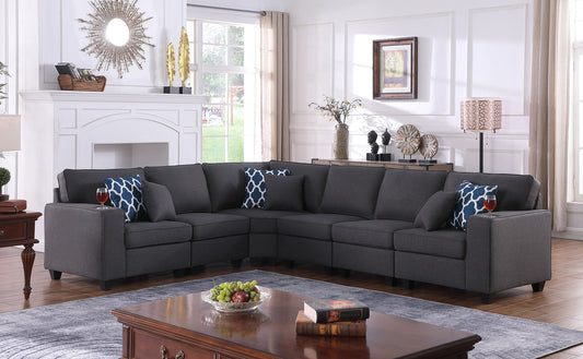 Cooper Dark Gray Linen 6Pc Modular Sectional Sofa Chaise with Cupholder