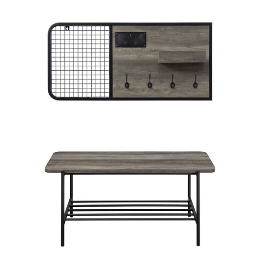 2 Piece Metal and Wood Bench with Wall Organizer - Gray Wash