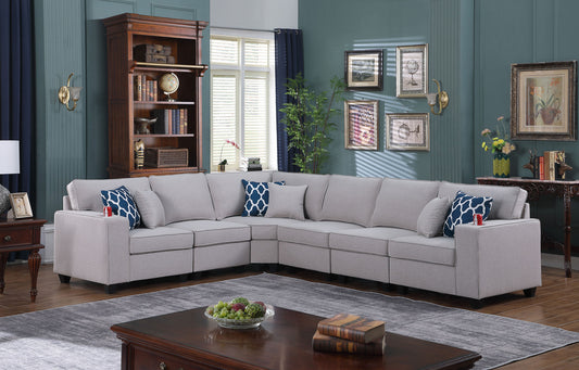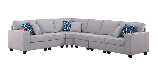 Cooper Light Gray Linen 6Pc Modular Sectional Sofa Chaise with Cupholder