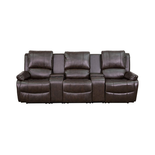 Allure Series 3-Seat Reclining Pillow Back Brown LeatherSoft Theater Seating Unit with Cup Holders