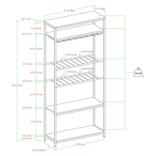 69" Wine Bottle and Stemware Storage Shelf - Dark Walnut
