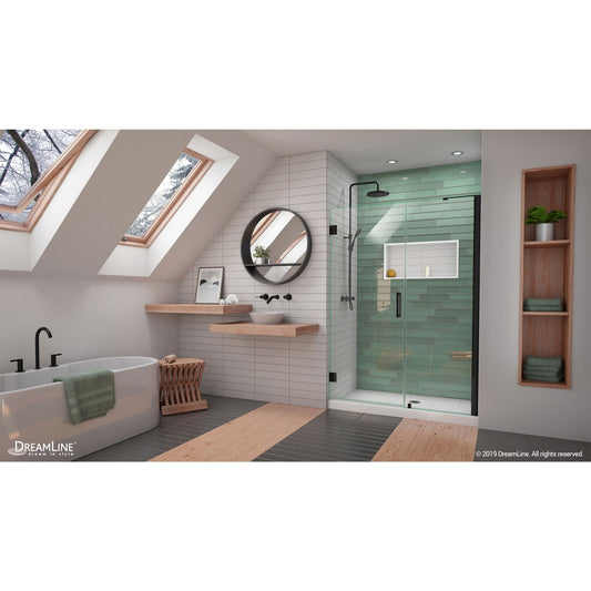 Unidoor-LS 54-55 in. W x 72 in. H Frameless Hinged Shower Door in Satin Black