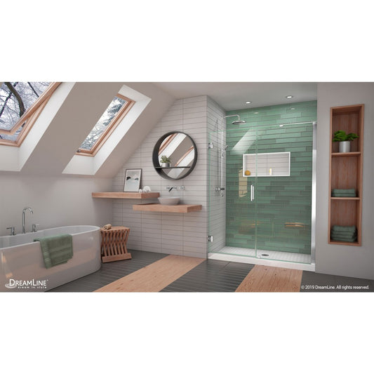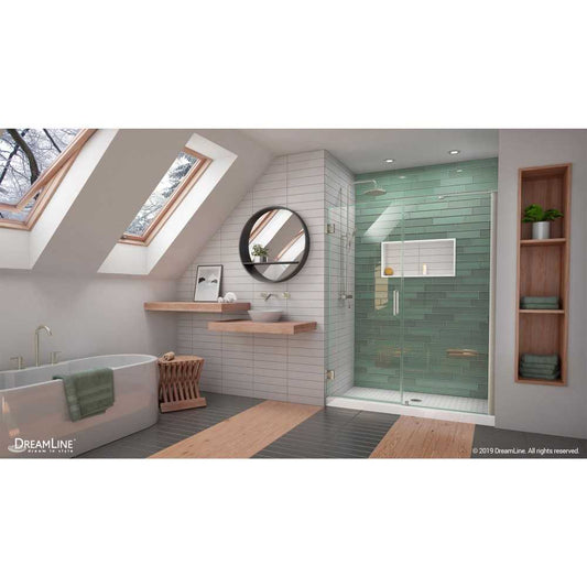 Unidoor-LS 55-56 in. W x 72 in. H Frameless Hinged Shower Door in Chrome