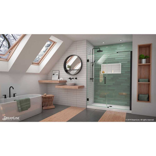 Unidoor-LS 55-56 in. W x 72 in. H Frameless Hinged Shower Door in Satin Black