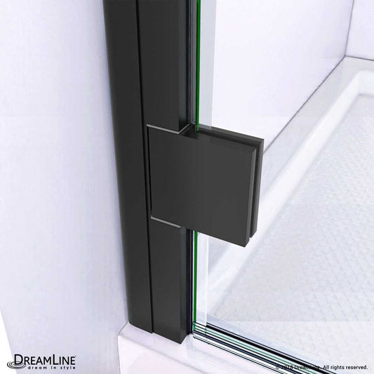 Lumen 34 in. D x 42 in. W by 74 3/4 in. H Hinged Shower Door in Satin Black with Black Acrylic Base Kit