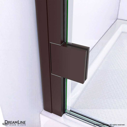 Lumen 34 in. D x 42 in. W by 74 3/4 in. H Hinged Shower Door in Oil Rubbed Bronze with Black Acrylic Base Kit