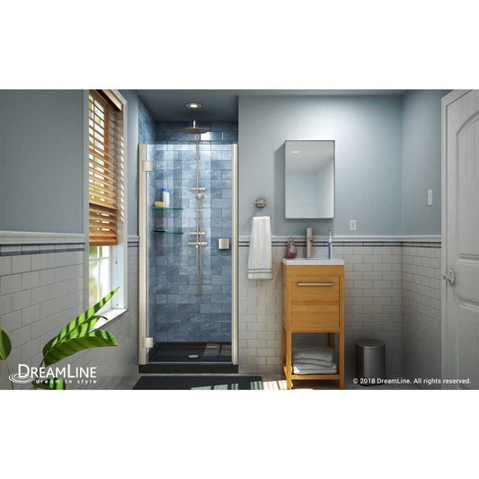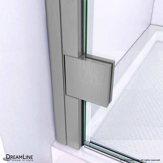 Lumen 34 in. D x 42 in. W by 74 3/4 in. H Hinged Shower Door in Brushed Nickel with Black Acrylic Base Kit