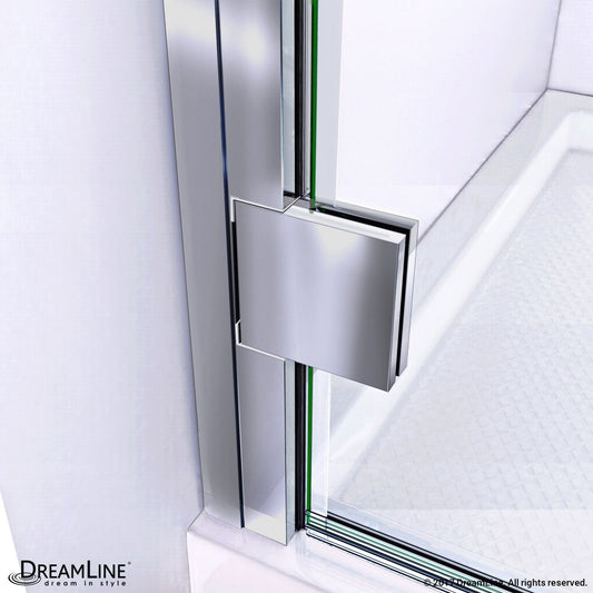 Lumen 34 in. D x 42 in. W by 74 3/4 in. H Hinged Shower Door in Chrome with White Acrylic Base Kit