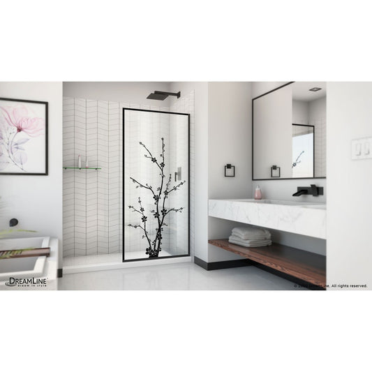 Linea Blossom 34 in. W x 72 in. H Single Panel Frameless Shower Door, Open Entry Design in Satin Black