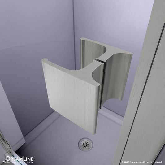 Lumen 32 in. D x 42 in. W by 74 3/4 in. H Hinged Shower Door in Brushed Nickel with Black Acrylic Base Kit