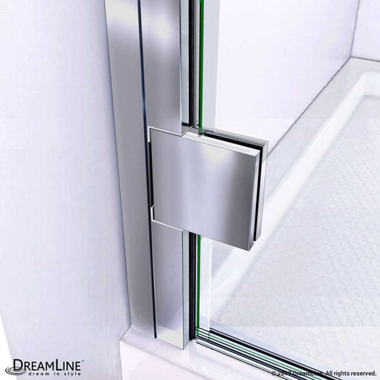 Lumen 32 in. D x 42 in. W by 74 3/4 in. H Hinged Shower Door in Chrome with White Acrylic Base Kit