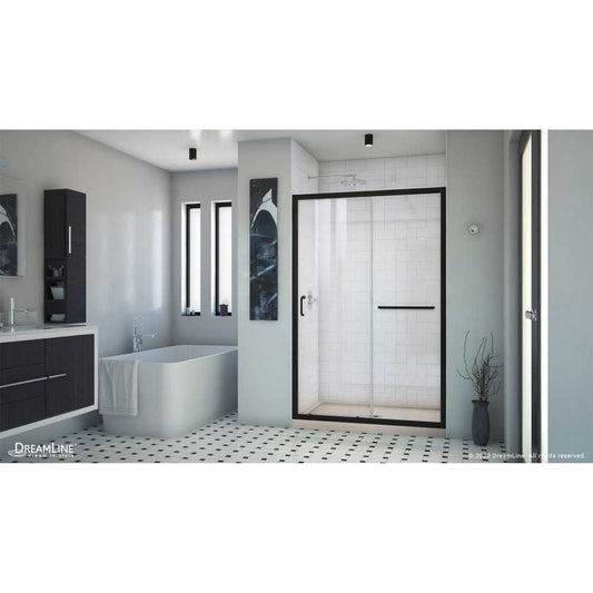 Infinity-Z 36 in. D x 48 in. W x 74 3/4 in. H Clear Sliding Shower Door in Satin Black and Center Drain Black Base