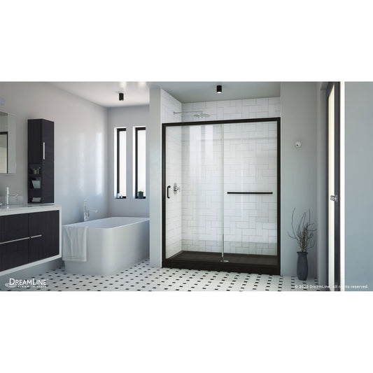 Infinity-Z 34 in. D x 60 in. W x 74 3/4 in. H Clear Sliding Shower Door in Satin Black, Right Drain Black Base