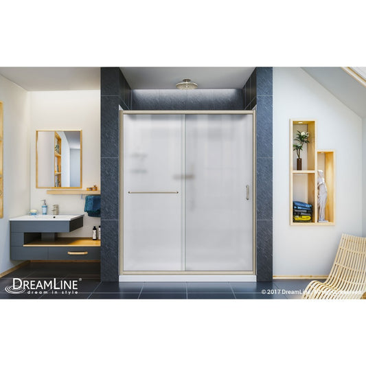 Infinity-Z 36 in. D x 60 in. W x 74 3/4 in. H Frosted Sliding Shower Door in Brushed Nickel and Right Drain White Base
