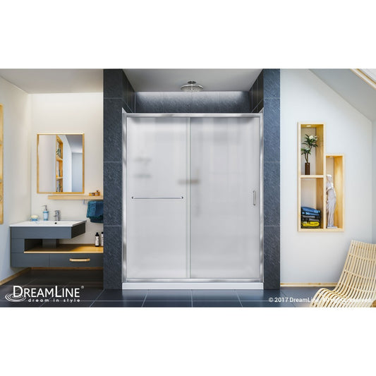 Infinity-Z 34 in. D x 60 in. W x 74 3/4 in. H Frosted Sliding Shower Door in Chrome and Right Drain White Base
