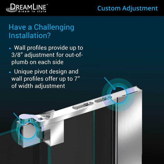 Allure 55-56 in. W x 73 in. H Frameless Pivot Shower Door in Chrome
