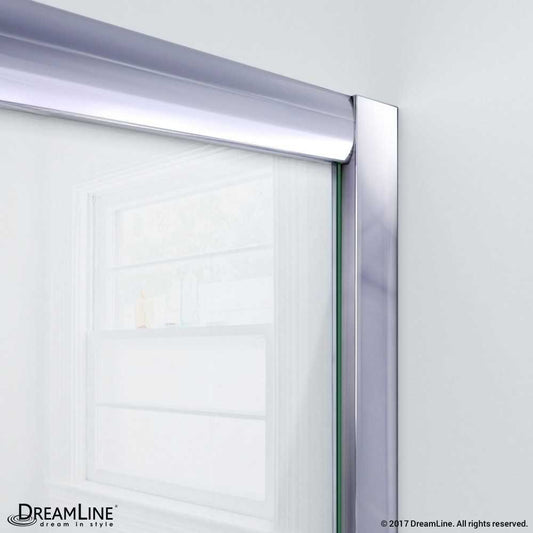 Visions 34 in. D x 60 in. W x 76 3/4 in. H Sliding Shower Door in Chrome with Left Drain White Base, Backwalls