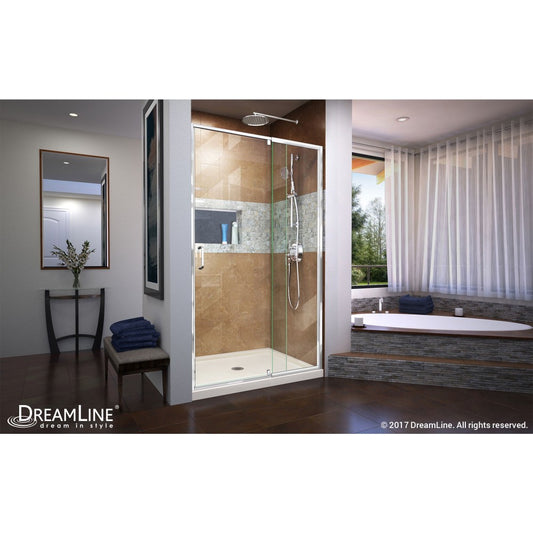 Flex 30 in. D x 60 in. W x 76 3/4 in. H Semi-Frameless Shower Door in Chrome with Center Drain White Base and Backwalls