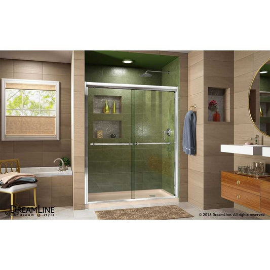 Duet 36 in. D x 60 in. W x 74 3/4 in. H Semi-Frameless Bypass Shower Door in Chrome and Center Drain Biscuit Base