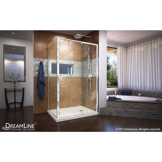 Flex 36 in. D x 48 in. W x 74 3/4 in. H Semi-Frameless Pivot Shower Enclosure in Chrome with Right Drain White Base Kit