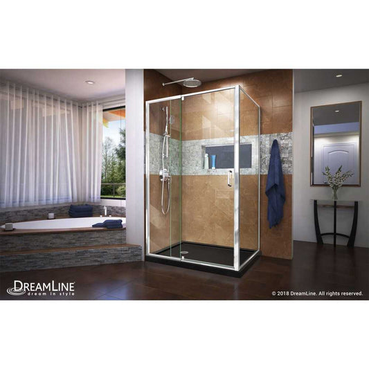 Flex 36 in. D x 48 in. W x 74 3/4 in. H Semi-Frameless Pivot Shower Enclosure in Chrome with Right Drain Black Base Kit