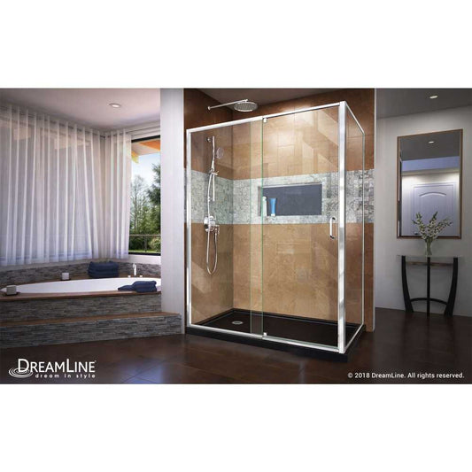 Flex 36 in. D x 60 in. W x 74 3/4 in. H Semi-Frameless Pivot Shower Enclosure in Chrome with Right Drain Black Base Kit