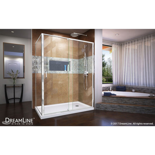 Flex 36 in. D x 60 in. W x 74 3/4 in. H Semi-Frameless Pivot Shower Enclosure in Chrome with Left Drain White Base Kit