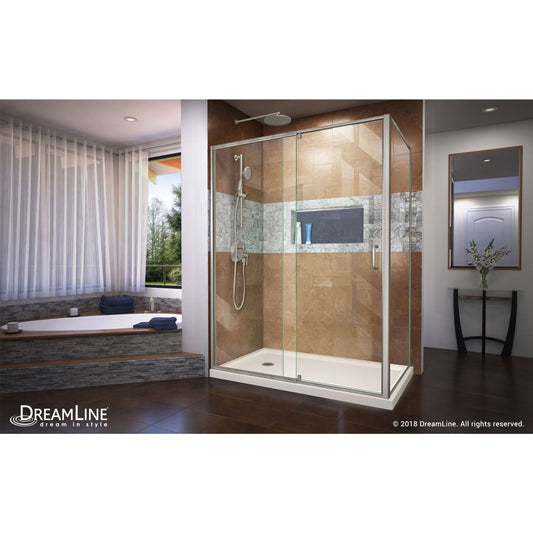 Flex 36 in. D x 60 in. W x 74 3/4 in. H Semi-Frameless Pivot Shower Enclosure in Chrome with Right Drain White Base Kit