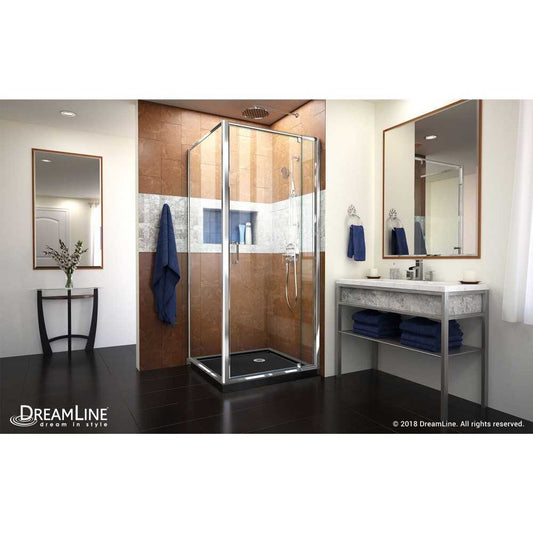 Flex 32 in. D x 32 in. W x 74 3/4 in. H Semi-Frameless Pivot Shower Enclosure in Chrome with Corner Drain Black Base