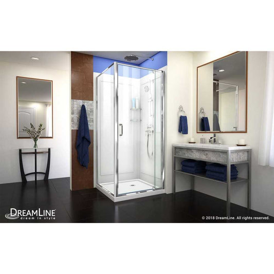 Flex 32 in. D x 32 in. W x 76 3/4 in. H Semi-Frameless Shower Enclosure in Chrome with Corner Drain Base and Backwalls