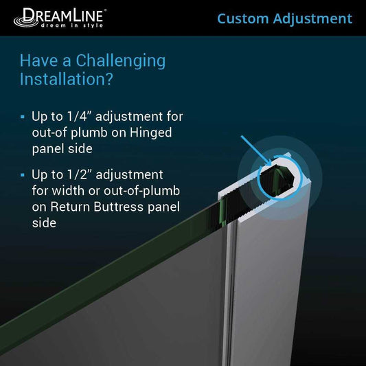 Unidoor-X 57 1/2 in. W x 34 3/8 in. D x 72 in. H Frameless Hinged Shower Enclosure in Chrome