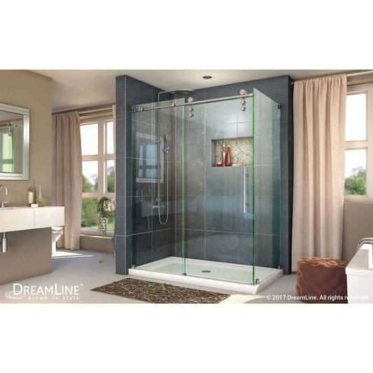 Enigma-Z 34 1/2 in. D x 60 3/8 in. W x 76 in. H Fully Frameless Sliding Shower Enclosure in Polished Stainless Steel