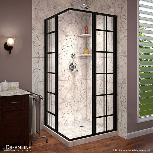 French Corner 34 1/2 in. D x 34 1/2 in. W x 72 in. H Framed Sliding Shower Enclosure in Satin Black