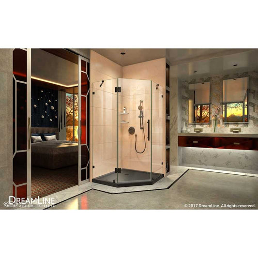 Prism Lux 36 in. x 74 3/4 in. Fully Frameless Neo-Angle Shower Enclosure in Satin Black with Black Base