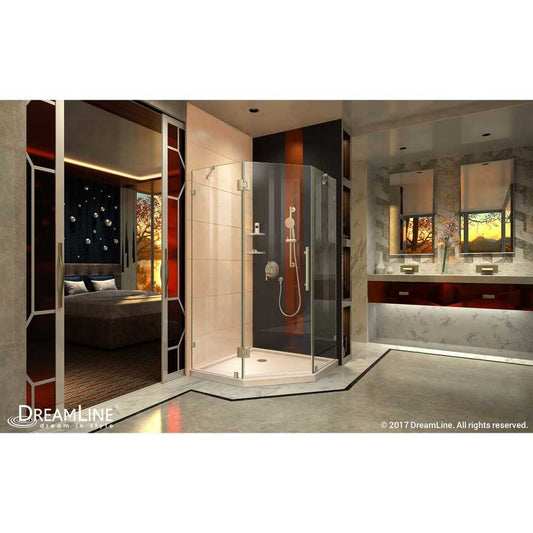Prism Lux 40 in. x 74 3/4 in. Fully Frameless Neo-Angle Shower Enclosure in Brushed Nickel with Biscuit Base