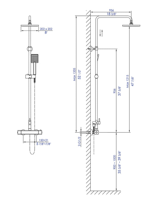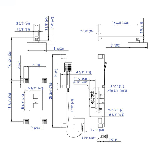 ALFI brand AB2862-BN Brushed Nickel Square Style Thermostatic Exposed Shower Set