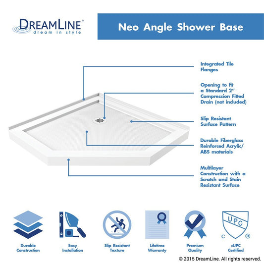 SlimLine 42 in. D x 42 in. W x 2 3/4 in. H Corner Drain Neo-Angle Shower Base in White