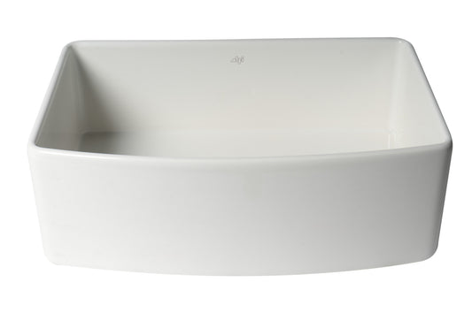 ALFI Brand Smooth Curved 30" x 20" Single Bowl Fireclay Farm Sink with Grid