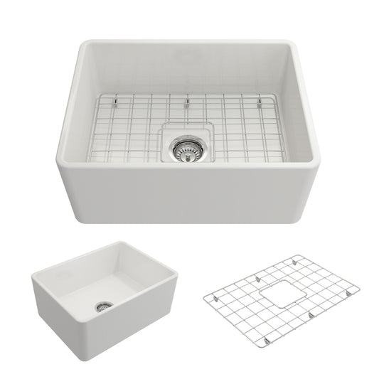 Classico Farmhouse Apron Front Fireclay 24" Single Bowl Kitchen Sink Matte White