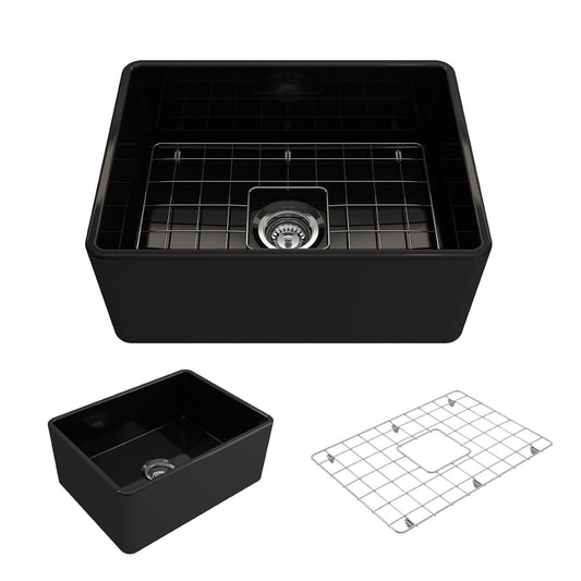 Classico Farmhouse Apron Front Fireclay 24" Single Bowl Kitchen Sink in Black