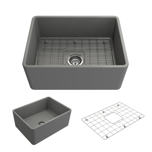 Classico Farmhouse Apron Front Fireclay 24" Single Bowl Kitchen Sink, Matte Gray