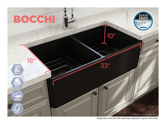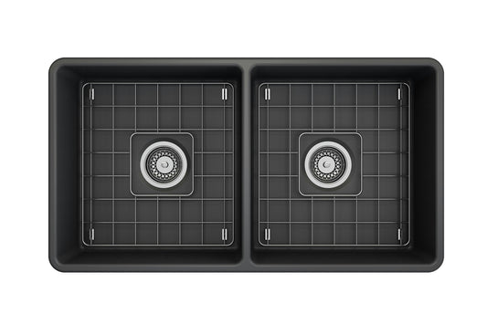 Classico Farmhouse Apron Front Fireclay 33" Double Bowl Kitchen Sink Matte Black