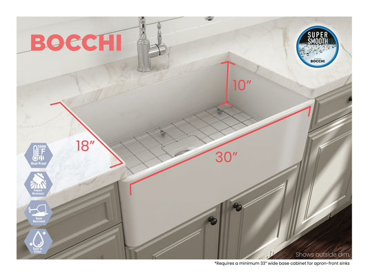 Classico Farmhouse Apron Front Fireclay 30" Single Bowl Kitchen Sink Matte White