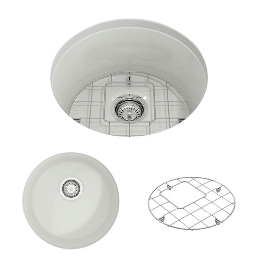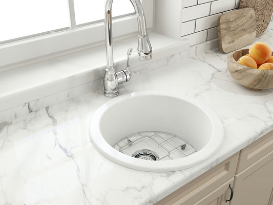 Sotto Round Dual-mount Fireclay 18.5" Single Bowl Bar Sink in White