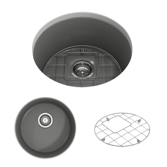 Sotto Round Dual-mount Fireclay 18.5" Single Bowl Bar Sink in Matte Gray