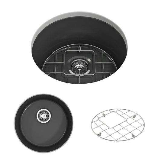 Sotto Round Dual-mount Fireclay 18.5" Single Bowl Bar Sink in Matte Dark Gray