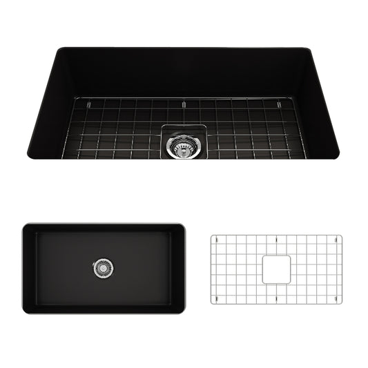 Sotto Dual-mount Fireclay 32" Single Bowl Kitchen Sink in Matte Black